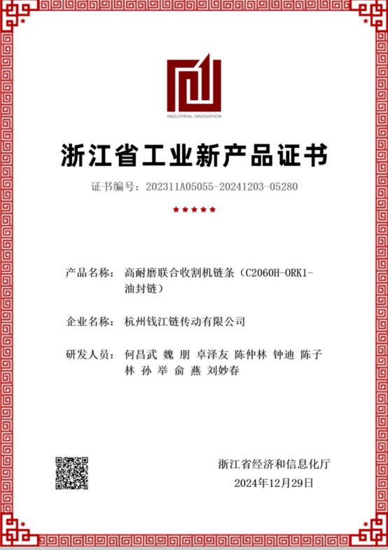 Pada tahun 1991, perusahaan berkolaborasi dengan Institut Penelitian Penggerak Rantai Universitas Jilin untuk mengembangkan dan memproduksi rantai dengan cincin-O dan cincin-X, yang dianugerahi "Penghargaan Khusus untuk Produk Baru yang Sangat Baik di Industri Rantai Tiongkok" pada tahun 2001. Perusahaan ini memiliki akumulasi jangka panjang di bidang teknis rantai bersegel minyak.