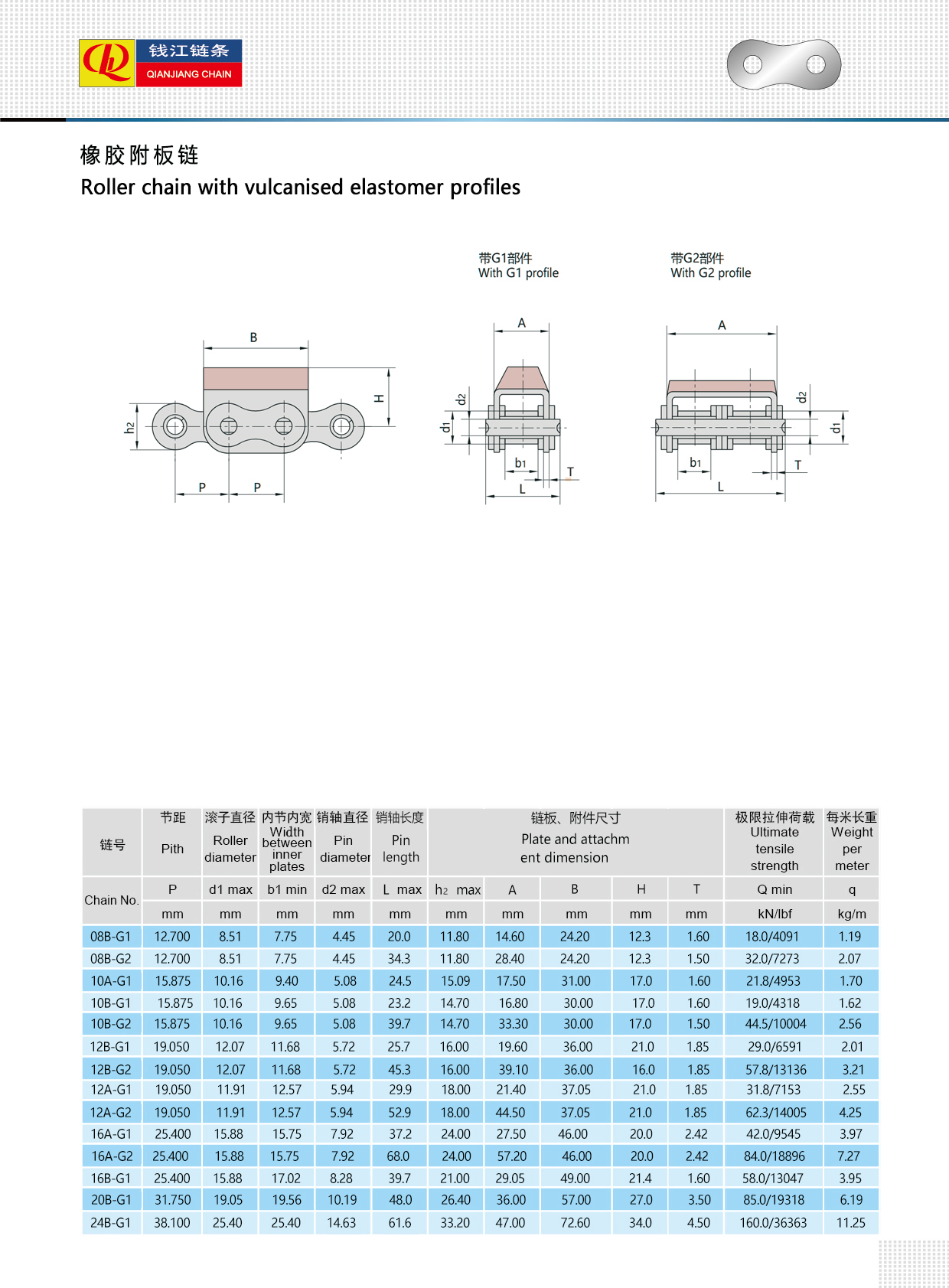 Rantai roller dengan profil elastomer tervulkanisasi