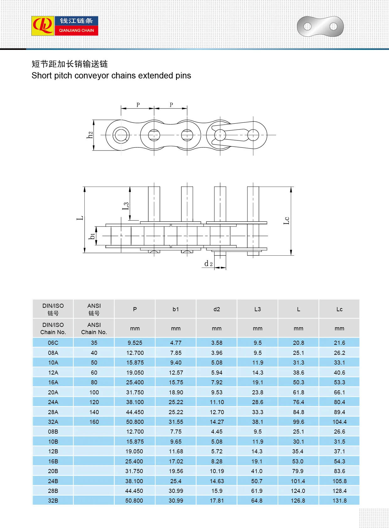 Rantai Konveyor Pitch Pendek dengan Pin Diperpanjang dirancang khusus untuk menghasilkan kinerja yang presisi dan andal dalam lingkungan penanganan material yang berat. Pin yang diperpanjang menonjol melampaui lebar rantai standar, sehingga memudahkan pemasangan perlengkapan, bilah, atau braket khusus—membuatnya sangat serbaguna untuk sistem otomatisasi, penyortiran, dan jalur perakitan.
