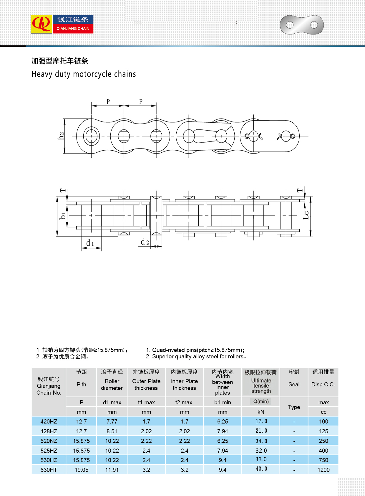 Ideal bagi pengendara yang menginginkan performa dan daya tahan, rantai ini cocok untuk petualangan off-road, touring jarak jauh, dan perjalanan perkotaan berkecepatan tinggi. Baik Anda menjelajahi medan yang berat atau menjelajahi jalan raya, rantai tugas berat kami memberikan tenaga, keamanan, dan kepercayaan diri yang Anda butuhkan. Tingkatkan perjalanan Anda dengan rantai yang sesuai dengan hasrat Anda — kuat, dapat diandalkan, dan tahan lama.