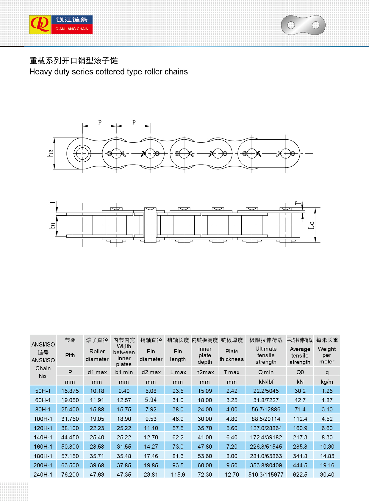 Rantai Roller Tipe Cottered Seri Tugas Berat dirancang untuk aplikasi berat yang mengutamakan keandalan dan daya tahan. Didesain dengan sistem cottered pin, rantai ini menawarkan kekuatan dan kinerja dibandingkan rantai roller tradisional, menjadikannya ideal untuk mesin tugas berat, konveyor, dan peralatan industri. Tipe cottered memastikan bahwa setiap pin terpasang erat, mengurangi risiko kendor dan memastikan pengoperasian yang konsisten dari waktu ke waktu.