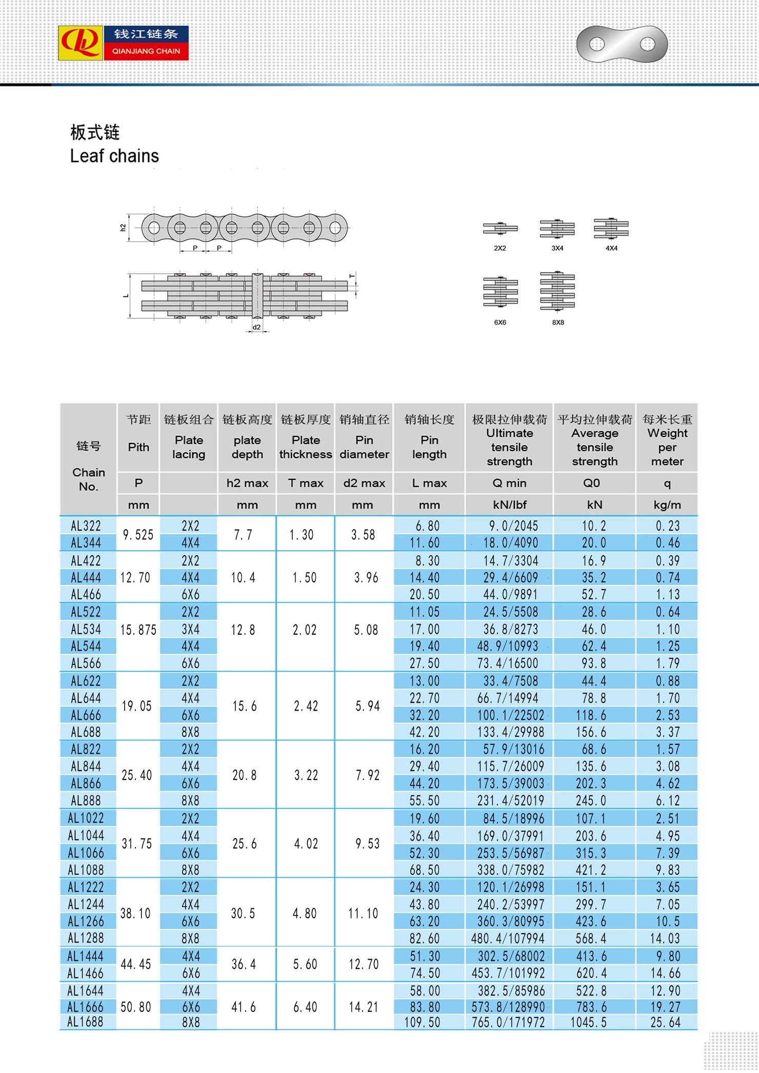 (Seri AL) Rantai daun tarik tinggi kelas industri