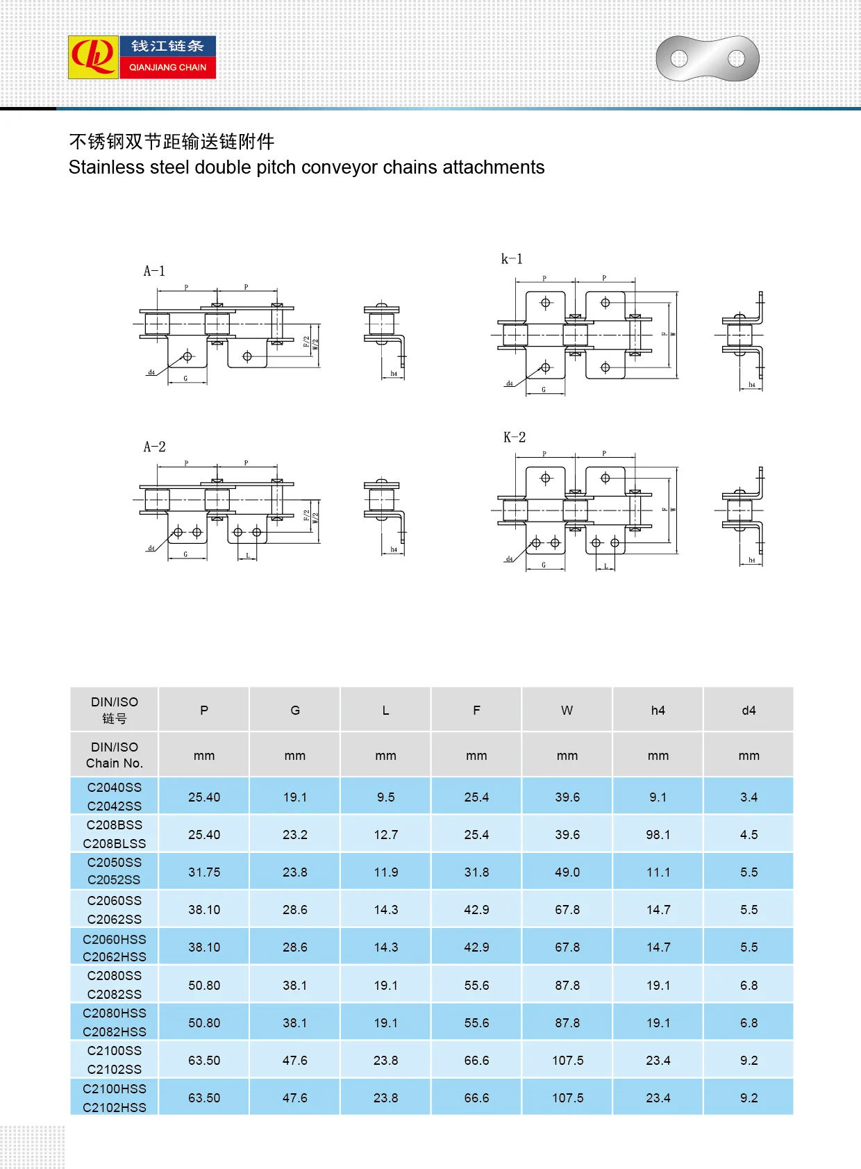 Lampiran rantai konveyor pitch ganda baja tahan karat
