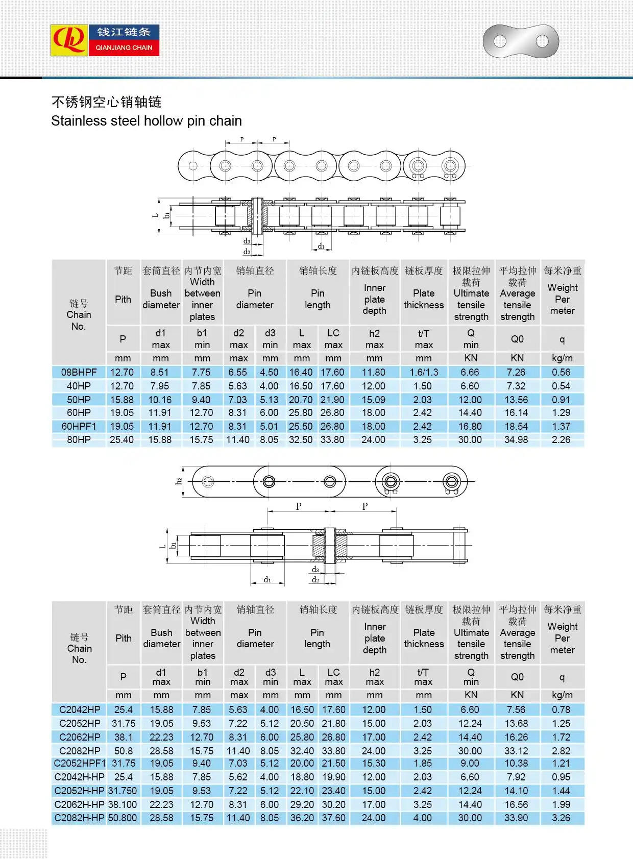 Rantai pin berongga baja tahan karat