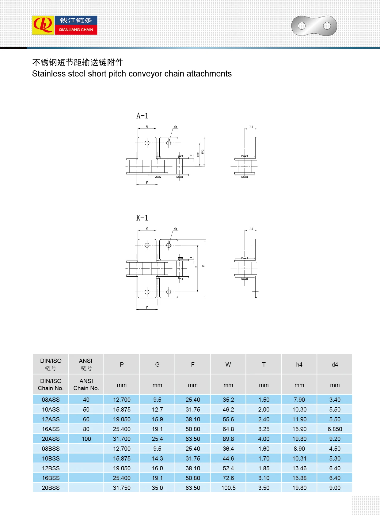 Lampiran rantai konveyor pitch pendek baja tahan karat