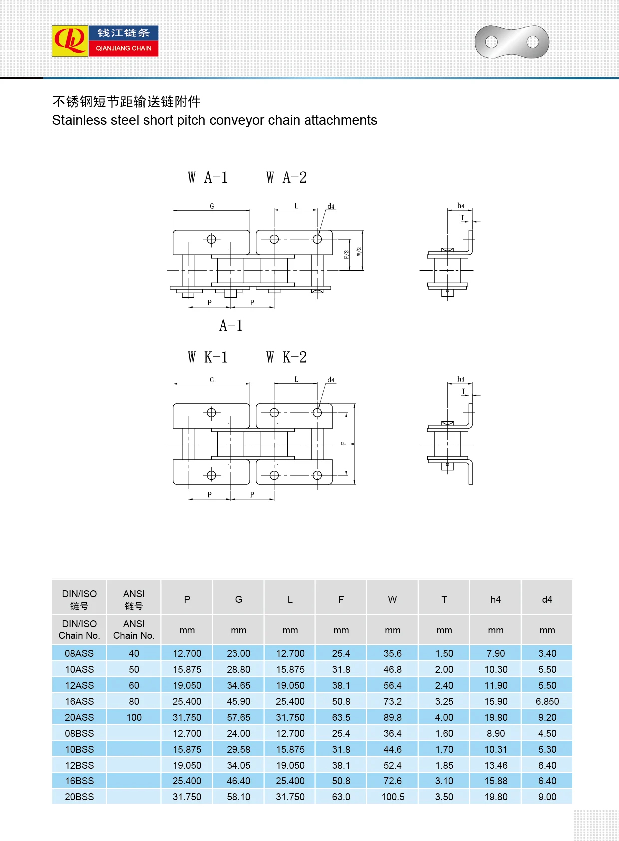 Dalam hal penanganan material yang efisien, attachment rantai konveyor short pitch baja tahan karat adalah solusi terbaik untuk industri yang menuntut ketahanan, presisi, dan keserbagunaan. Dibuat dari baja tahan karat bermutu tinggi, alat tambahan ini menawarkan ketahanan luar biasa terhadap korosi, keausan, dan suhu, sehingga ideal untuk lingkungan yang keras seperti pemrosesan makanan, produksi bahan kimia, dan obat-obatan. Desain pitch pendeknya memastikan pengoperasian yang lancar dengan gesekan minimal, sehingga mengurangi biaya pemeliharaan sekaligus produktivitas.